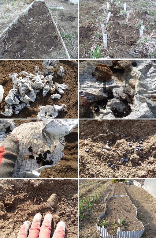 | ◆2013/3/22のジャーマンアイリス畑の様子: 今日はヘメロカリスの交配株の植替えと昨年交配して採取したヘメロカリスの 種を蒔きました。 関東北部だったら本来は、昨年10月に蒔くべきで、遅くても2月に蒔くべき だと思いますが、ちょっと遅すぎです。 でも、3月下旬にまた寒くなったので、こまめに水を遣り発芽を期待します♪ 交配種は花が咲いてみないと、どんな花が咲くか分からないので、ある意味楽 しみでもあります。 蒔ききれなかったヘメロカリスの交配種があるので、当ショップで販売してい ます。どんな花が咲くか分からないヘメロカリスの交配種から花を咲かせたい 方には、楽しみな商品だと思います。 |