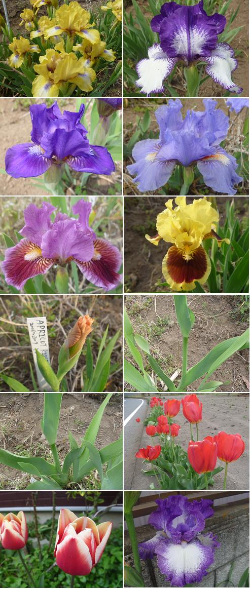 今日は強風が吹いています。畑でジャーマンアイリスも風に揺られているでしょう 早く咲き出した「D001:Add It Up」は花が咲き揃ってきました♪ 他のドワーフやミニ品種も花を咲かせ始めています。 トール品種は花の開花までは、まだまだのようですが一部で花茎が伸びていました(^^♪ いろいろな所でチューリップも満開になってます。 先日、驚くことに近所のトール種のジャーマンアイリスがもう開花していました!早い! 家の花壇のジャーマンアイリスも花茎が伸びていたので、今年は4月中からトール種の 花がいろいろな所で見れるようです。 |