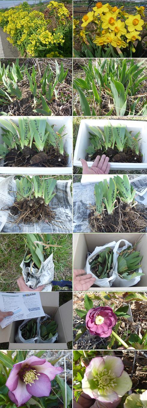 4月になり暖かくなり菜の花や水仙の鮮やかな黄色が目立つようになりますた♪ 畑のジャーマンアイリスの葉もようやく伸びてきています! 今年もジャーマンアイリスの株の販売を開始しましたが、気の早いお客様の ご注文に対応しております。 この時期は株や葉や根が急成長する時期なので、株はなるべく土つきで掘り 上げて、株や根の再生が早くなるようにしています。 掘り上げた株は少しでも乾燥しないように、発泡スチロール箱に入れフタを しておきます。 発送前には株や根が少しでも乾燥しないように濡れた新聞紙に包んでビニール 袋に入れて送ります。湿気を嫌うジャーマンアイリスですが、この時期は病気 の心配もないので、植替え後に直ぐに株や根が成長(再生)するように、季節 に応じたベストな発送を心がけています。これも店主のこだわりオヤジの配慮 であります!(*^^)v 畑では、今の時期はクリスマスローズの花が咲いています♪ |