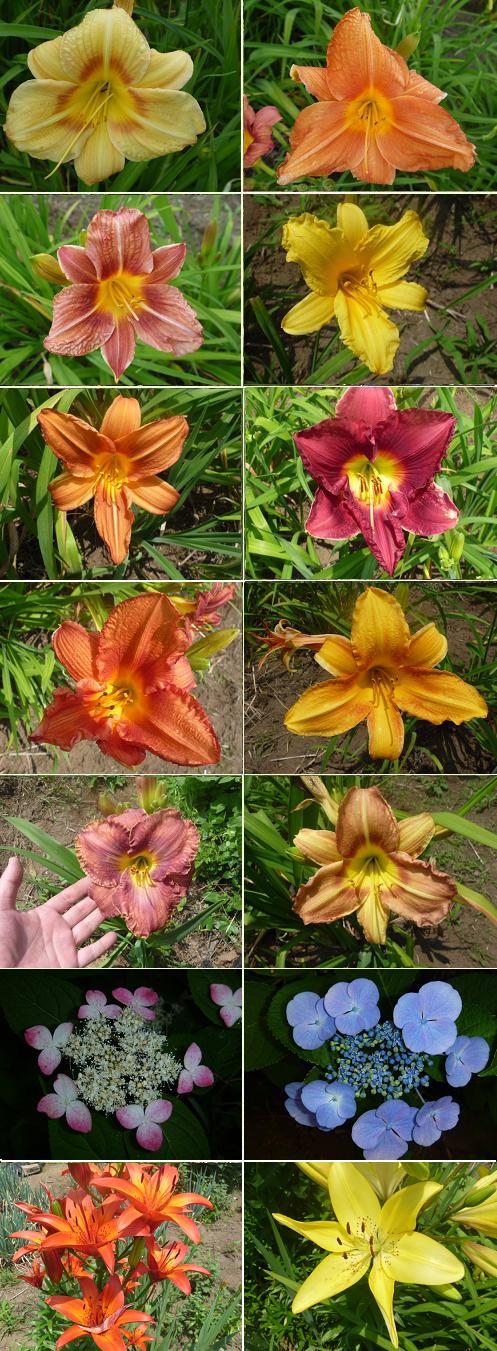 畑では店主が交配したヘメロカリスが咲いていますが、花の最盛期 は、これから7月中旬の間になるでしょうか。花茎が伸びてつぼみ 多数出来かかっています。 ジャーマンアイリスとは違って、ヘメロカリスは土に水分がある程度 ないと花色がはっきりでません! 梅雨に入ってのに、最近は雨が少なく地面が乾燥気味なので、ヘメロ カリスの開花のためには、水遣りが必要です。 6/22~7月中旬までヘメロカリスの現地見学&販売にも対応いたします ので、お近くの方は足を運んでみてくださいね!(^^♪ 梅雨のこの時期は、アジサイやユリも咲くので、花を楽しむことがで きます♪ |